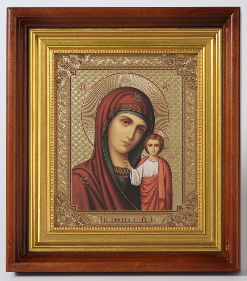 Икона в киоте 18х24 изображение на пластике, багетный подрамник№1 Казанская БМ