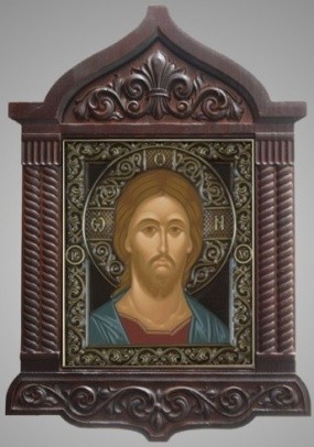 Киот-липа, резьба ЧПУ, риза-латунь(патенирование), стекло, изображение-шелкография