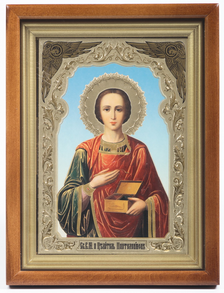 Икона в киоте 18х24 сложный №2, конгрев Пантелеимон