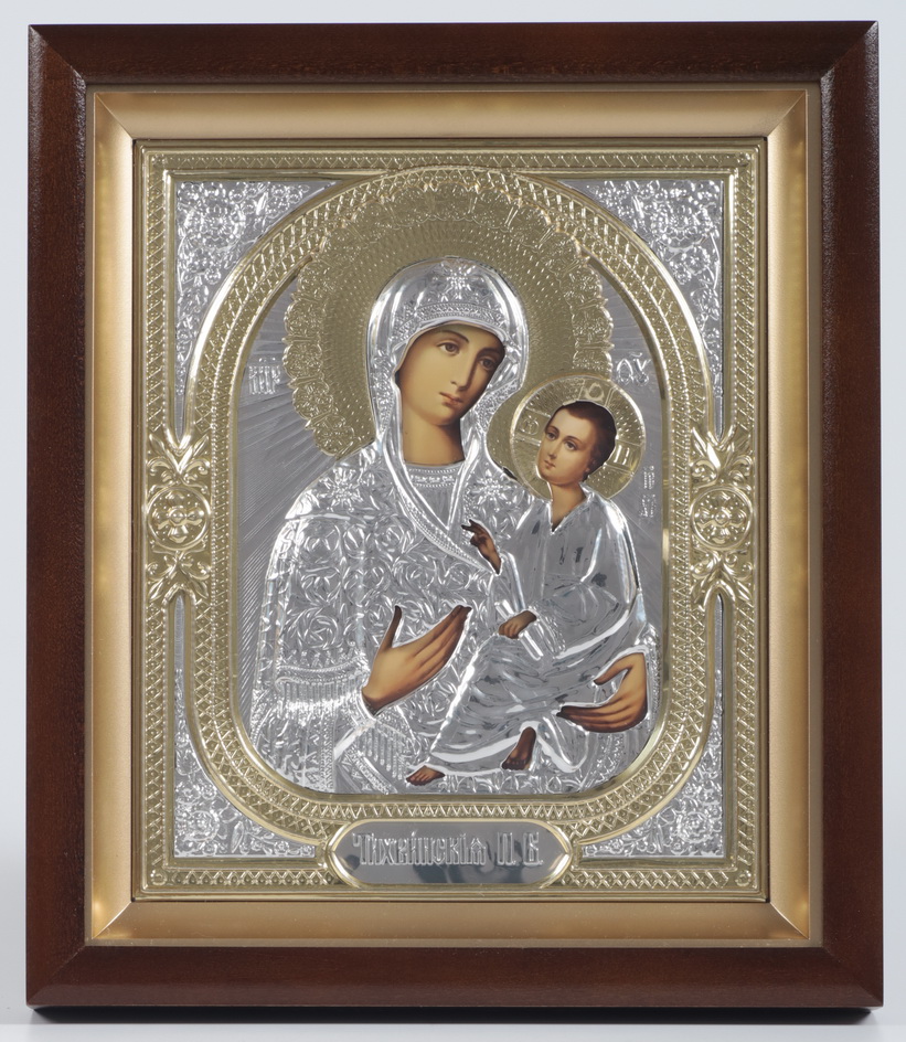 Икона в киоте 18х24 сложный, фото, риза объёмная №1 Тихвинская БМ