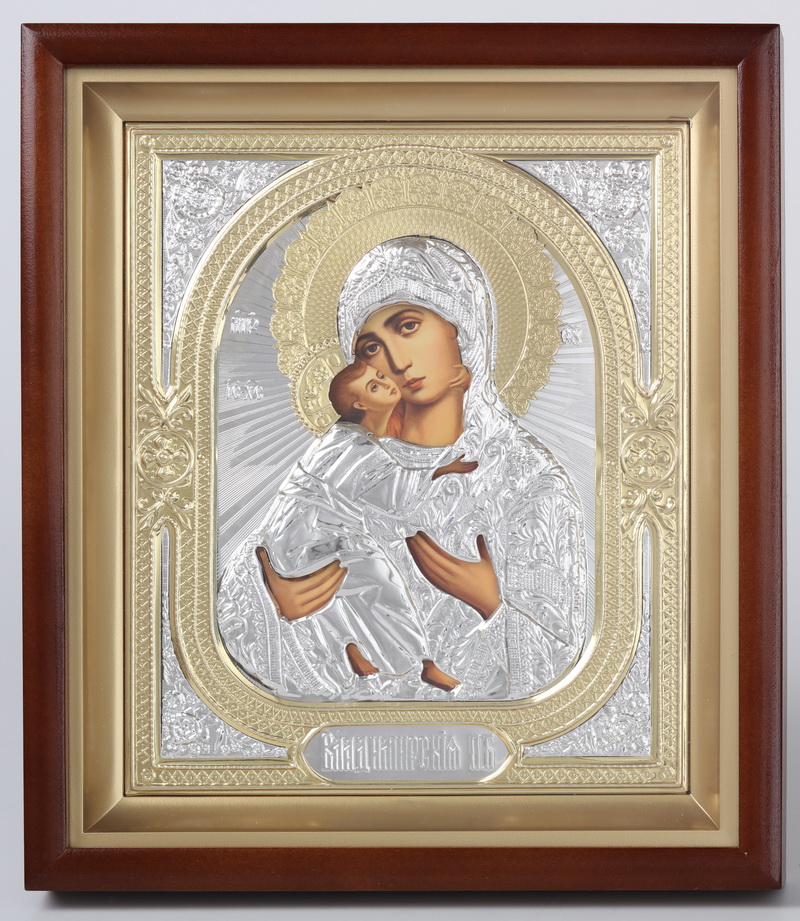 Икона в киоте 18х24 сложный, фото, риза объёмная №1 Владимирская БМ