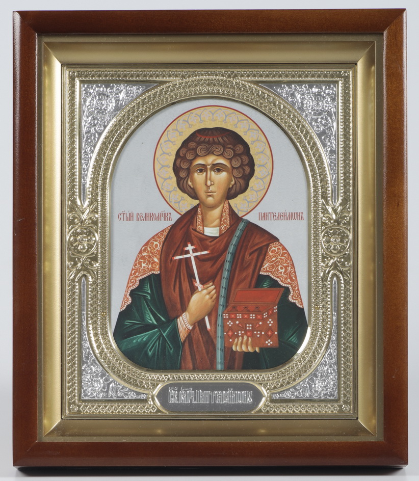 Икона в киоте 18х24 сложный, фото, риза-рамка №1 великомученика и целителя Пантелеимона