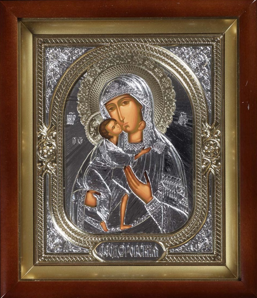Икона в киоте 18х24 сложный, темпера, риза объёмная №1 Феодоровская БМ