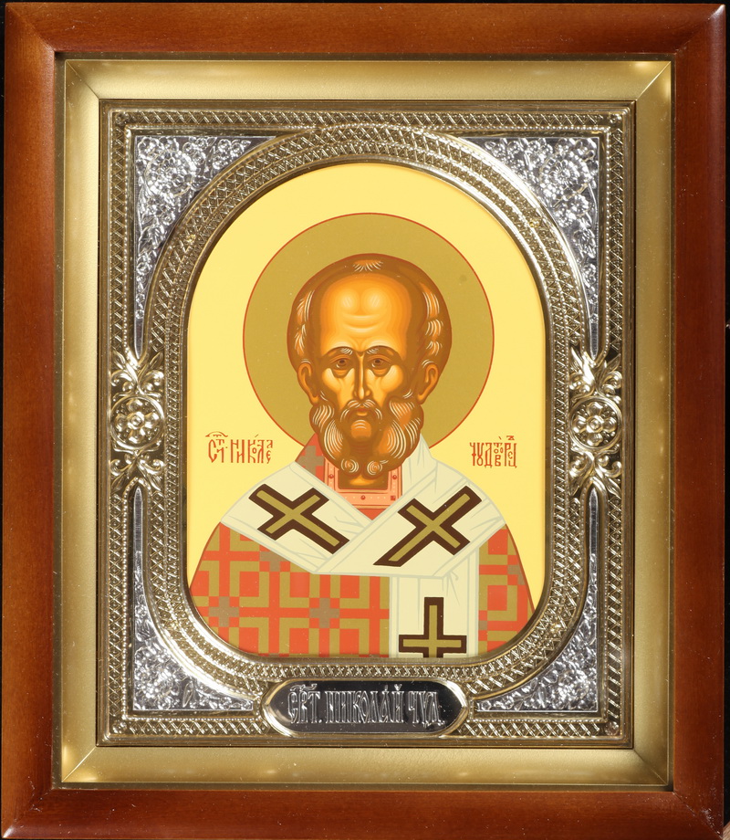 Икона в киоте 18х24 сложный, темпера, риза-рамка №1 Николай Чудотворец