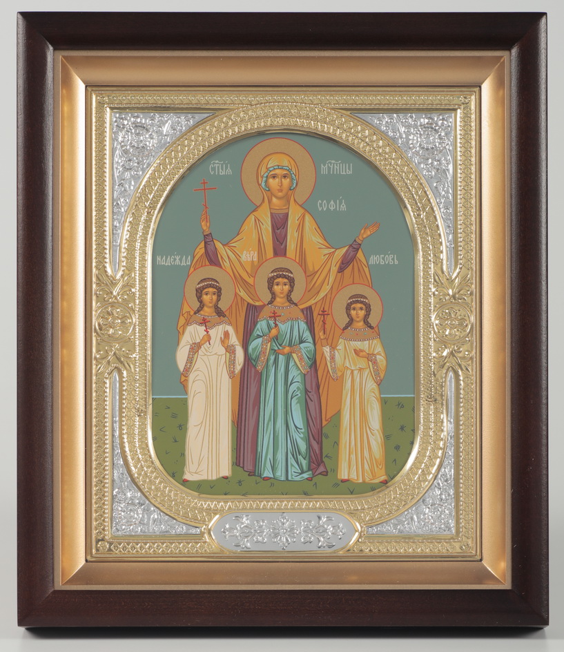 Икона в киоте 18х24 сложный, темпера, риза-рамка №1 Вера, Надежда, Любовь