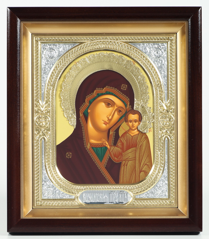 Киот-липа, аэрозольный подрамник, риза-алюминий, стекло, изображение-шелкография