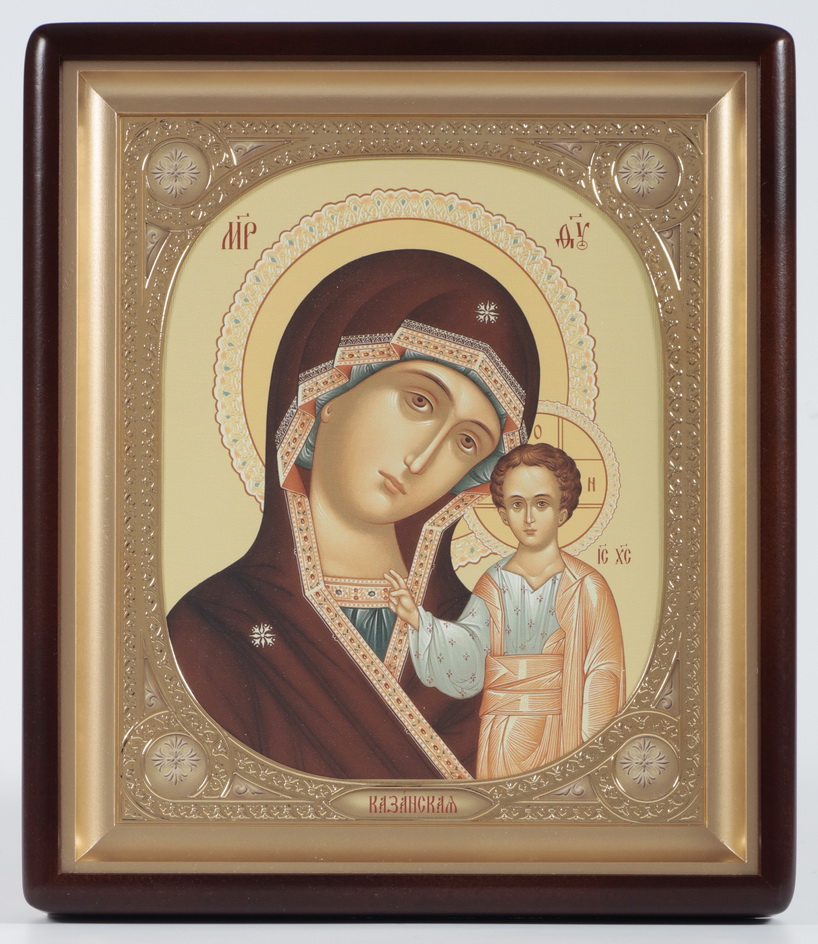 Икона в киоте 24х30 фигурный, канвас, рамка овальная золочёная Божией Матери «Казанская»