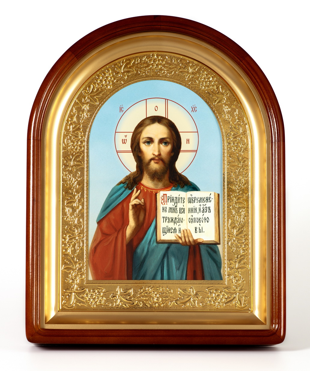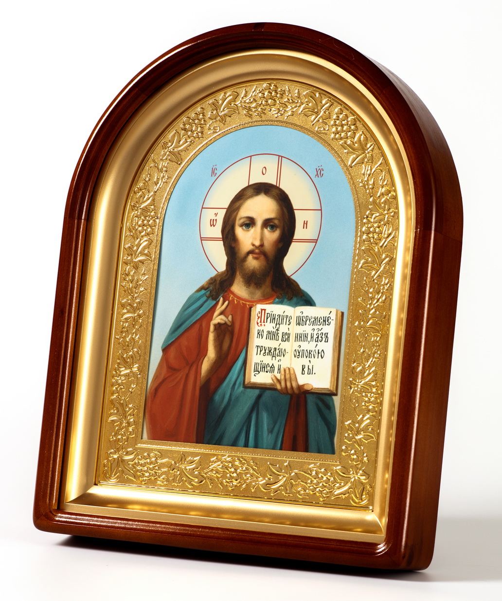 Икона в киоте 24х30 сложный, арочный, фото, рамка золочёная Спасителя