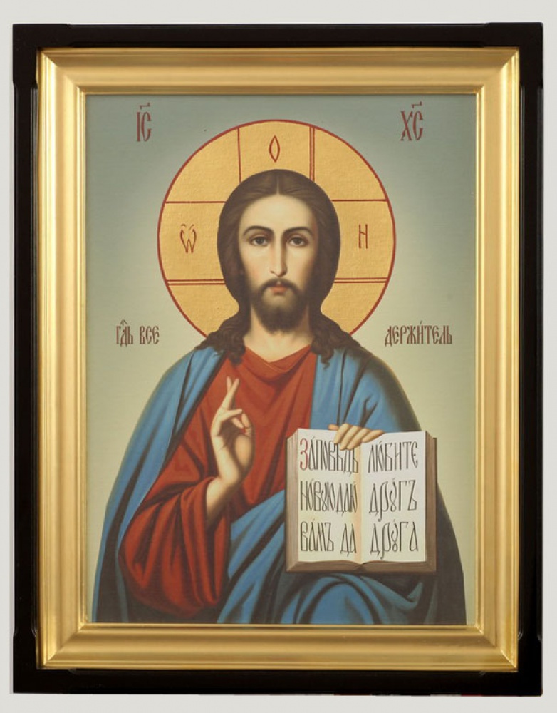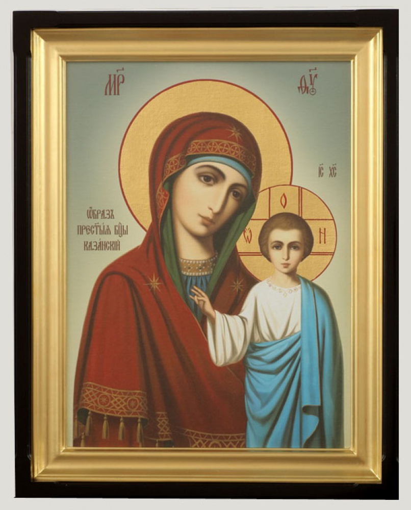 Икона в киоте 40х50 классический, канвас, нимб и подрамник золочёные