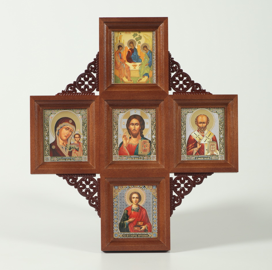 Икона в киоте 6х7 многоместная, двойное тиснение, 5 икон, резная