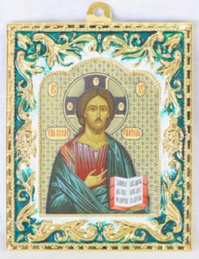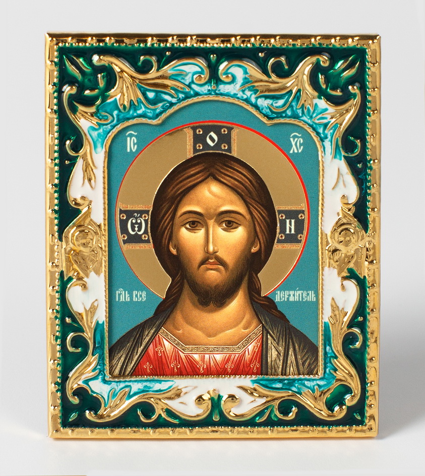Икона Господь Вседержитель в металлической рамке, покрытой эмалью, сможет занять центральное место в домашнем иконостасе.