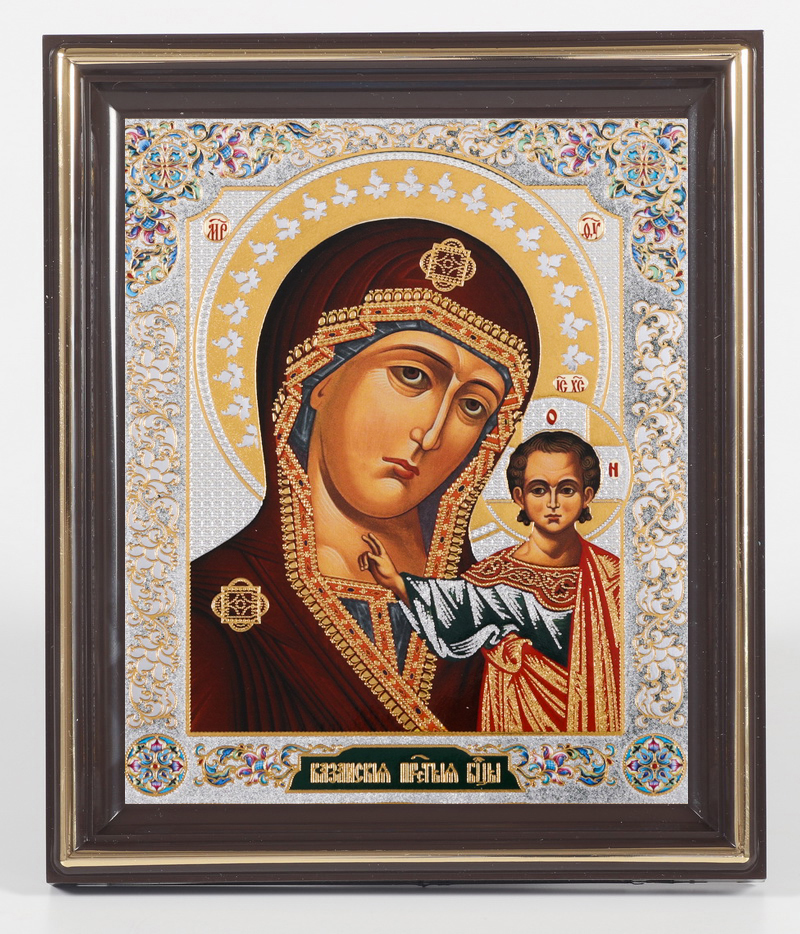 Икона в пластмассовой рамке 11х13 тиснение Казанская БМ 10