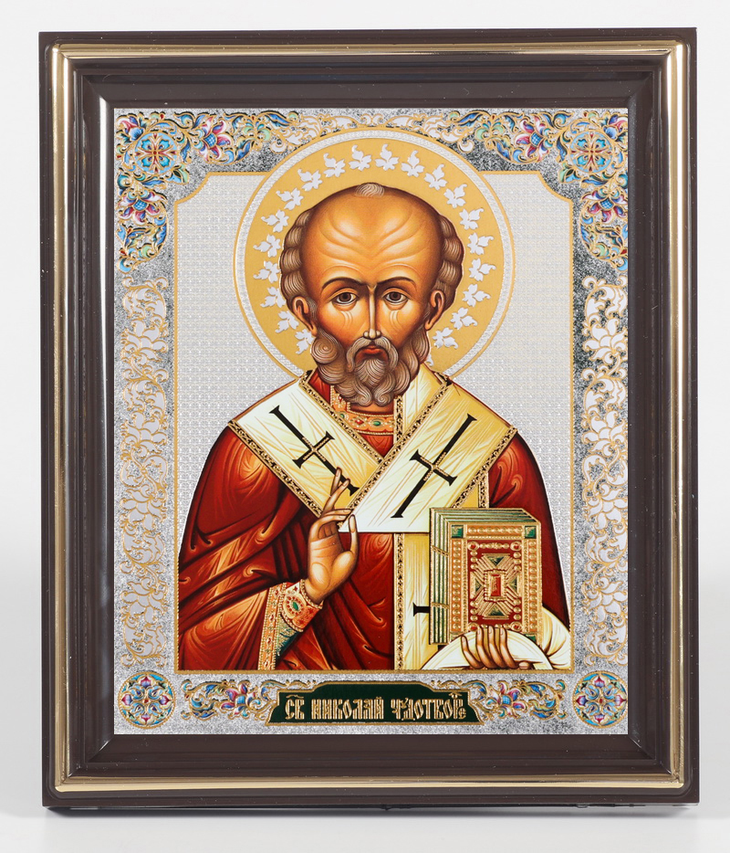 Икона в пластмассовой рамке 11х13 тиснение Николай Чудотворец 10