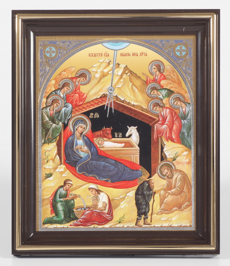 Икона в пластмассовой рамке 11х13 тиснение Рождество Христово 39