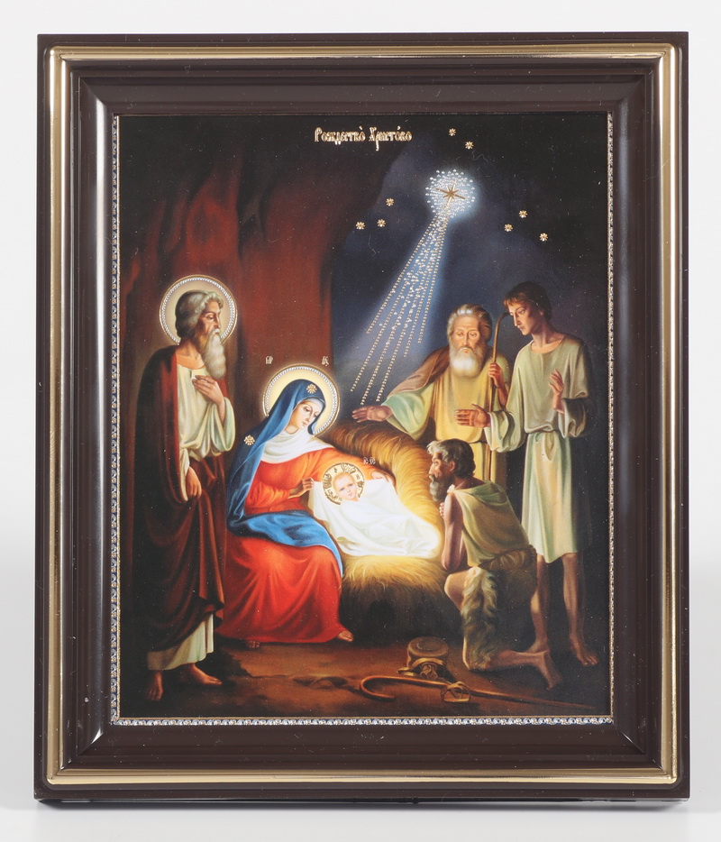 Икона в пластмассовой рамке 11х13 тиснение Рождество Христово 4