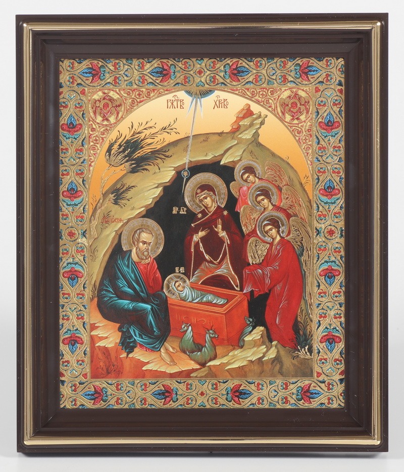 Икона в пластмассовой рамке 11х13 тиснение Рождество Христово 45