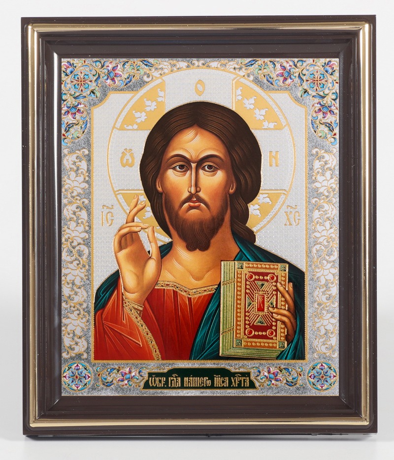Икона в пластмассовой рамке 11х13 тиснение Спаситель 10