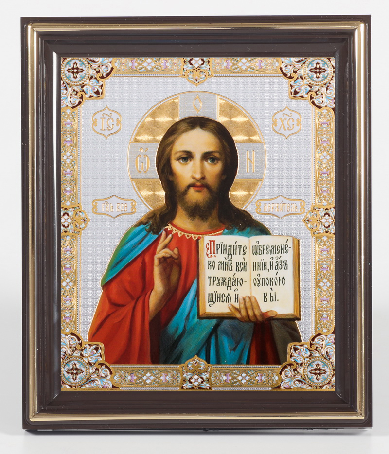 Икона в пластмассовой рамке 11х13 тиснение Спаситель 14