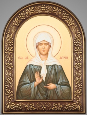 Икона в пластмассовой рамке 18х24 арочная патинирование Матрона Московская (с венчиком)