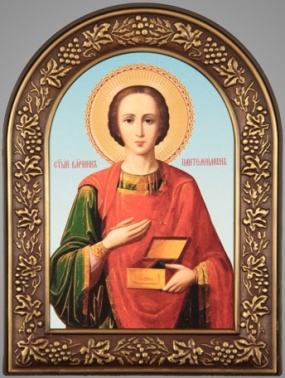 Икона в пластмассовой рамке 18х24 арочная патинирование Пантелеимон 1