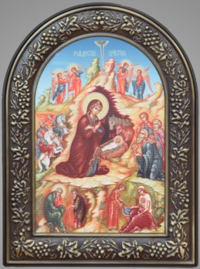 Икона в пластмассовой рамке 18х24 арочная патинирование Рождество Христово 4