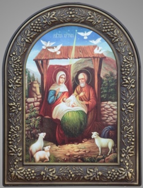 Икона в пластмассовой рамке 18х24 арочная патинирование Рождество Христово 5