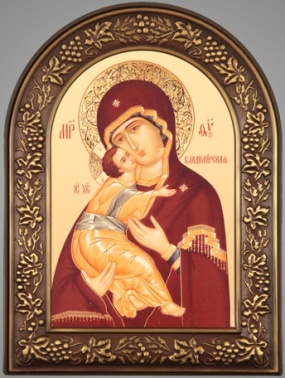 Икона в пластмассовой рамке 18х24 арочная патинирование Владимирская БМ 2