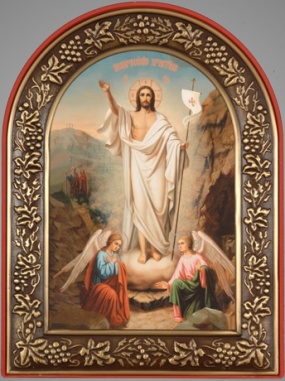 Икона в пластмассовой рамке 18х24 арочная патинирование Воскресение Христово