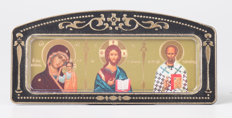 Икона в пластмассовой рамке 3х8,5 тройная с липкой лентой