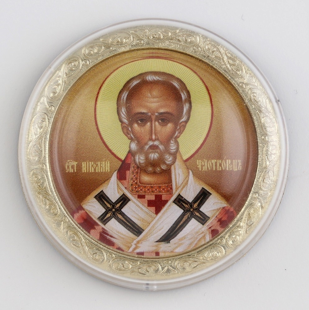 Икона в пластмассовой рамке 4х5 круглая №2 Николай Чудотворец 2