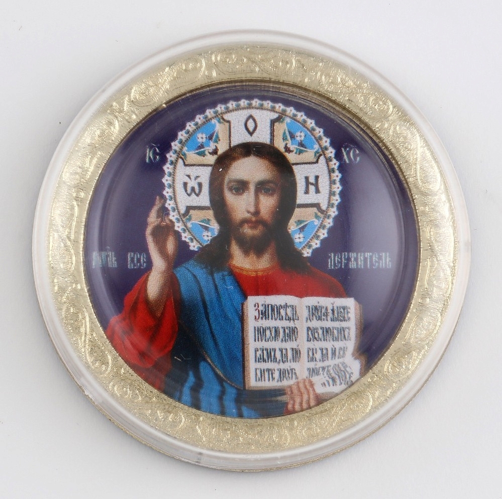 Икона в пластмассовой рамке 4х5 круглая №2 Спаситель 7