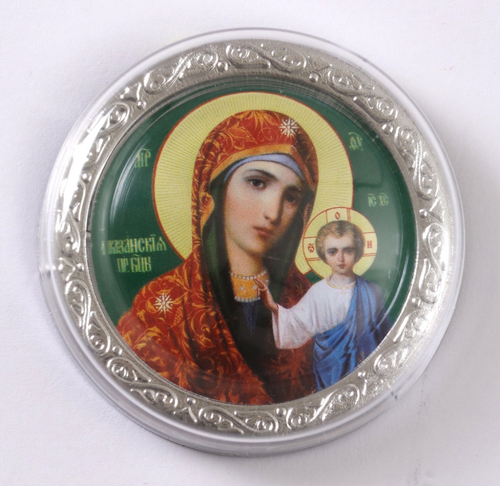 Икона в пластмассовой рамке 4х5 круглая Казанская БМ 10