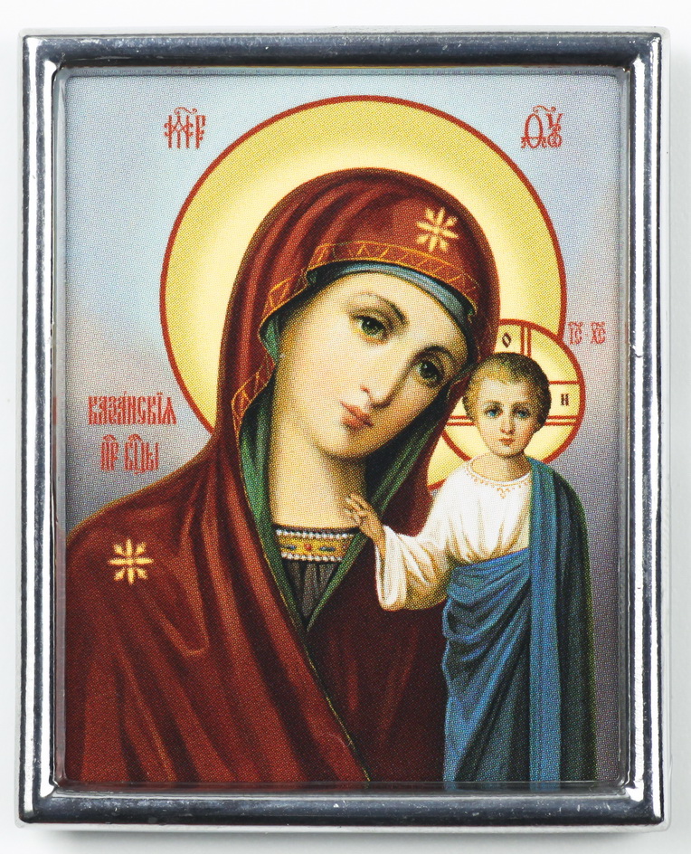 Икона в пластмассовой рамке 4х5 металлизированная Казанская БМ 14