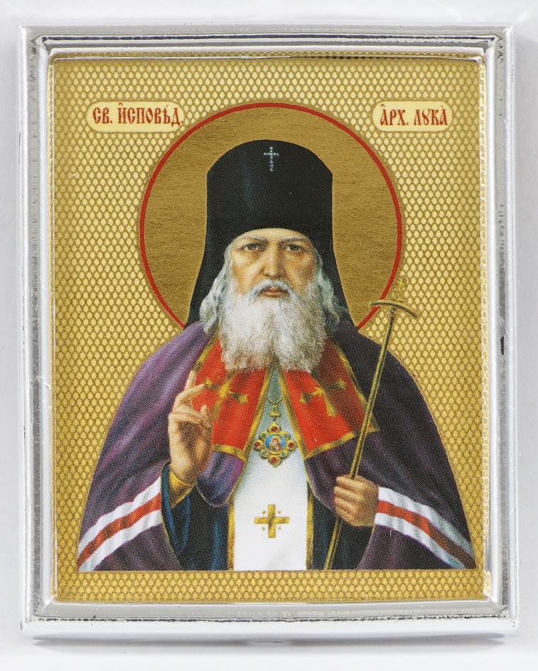 Икона в пластмассовой рамке 4х5 металлизированная Лука Войно-Ясенецкий