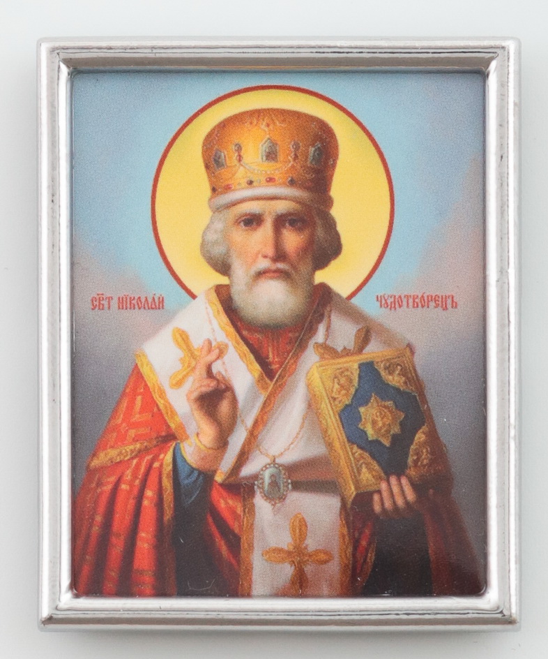 Икона в пластмассовой рамке 4х5 металлизированная Николай Чудотворец 14
