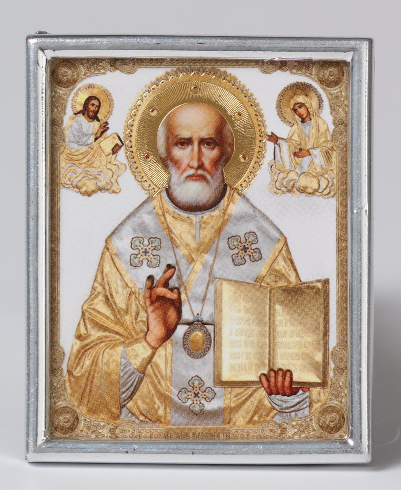 Икона в пластмассовой рамке 4х5 металлизированная Николай Чудотворец ХХС 2