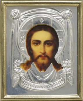 Икона в пластмассовой рамке 4х5 металлизированная риза Спас Нерукотворный