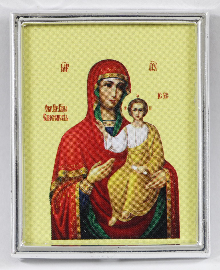 Икона в пластмассовой рамке 4х5 металлизированная Смоленская БМ