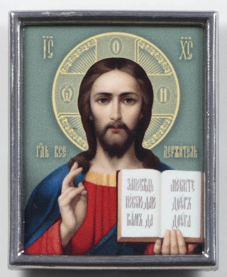 Икона в пластмассовой рамке 4х5 металлизированная Спаситель 34