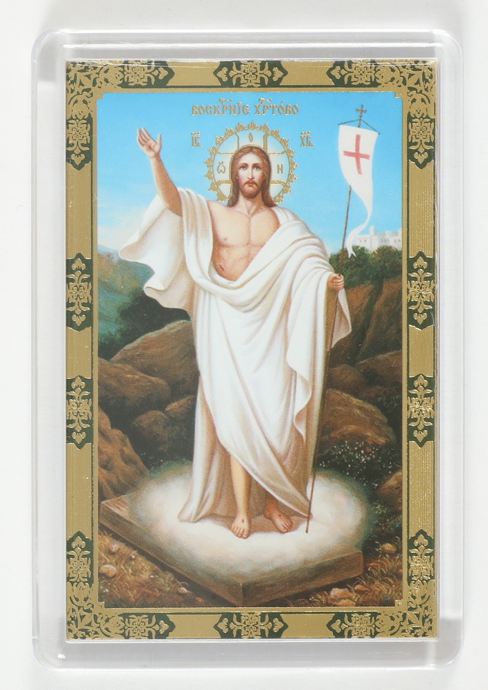 Икона в пластмассовой рамке 5х7 пластмассовая с липкой лентой Воскресение Христово 2