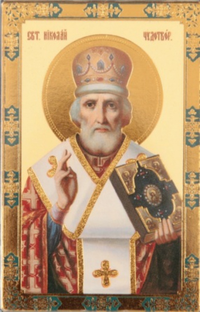 Икона в пластмассовой рамке 5х7 пластмассовая с подставкой Николай Чудотворец