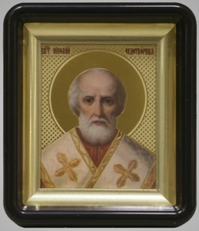 Икона в пластмассовой рамке 6х7 латунированная Николай Чудотворец