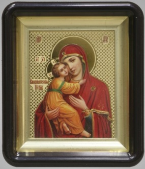 Икона в пластмассовой рамке 6х7 латунированная Владимирская БМ