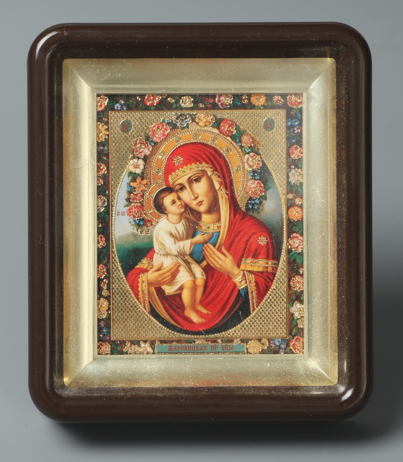 Икона в пластмассовой рамке 6х7 латунированная Жировицкая БМ