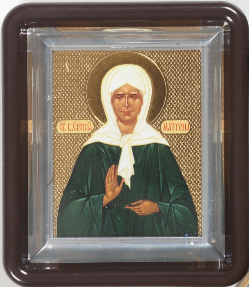 Икона в пластмассовой рамке 6х7 металлизированная Матрона Московская (с венчиком)
