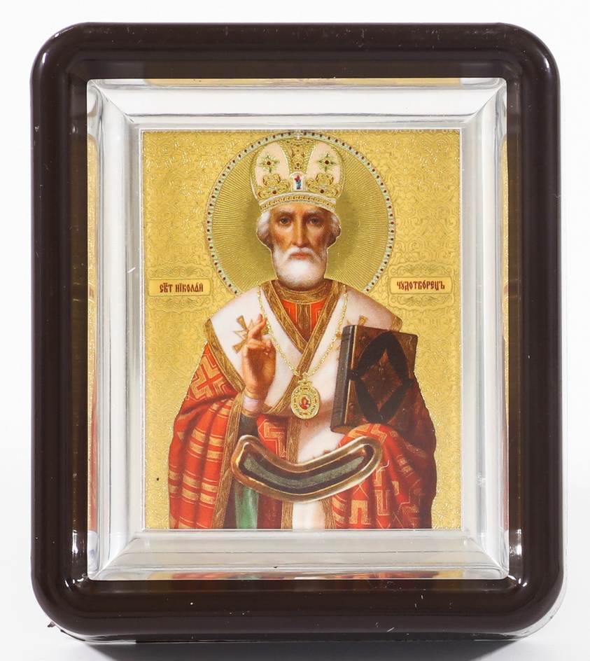 Икона в пластмассовой рамке 6х7 металлизированная Николай Чудотворец (ковчег)
