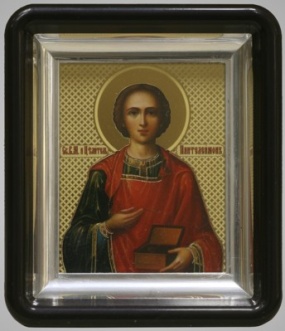 Икона в пластмассовой рамке 6х7 металлизированная Пантелеимон