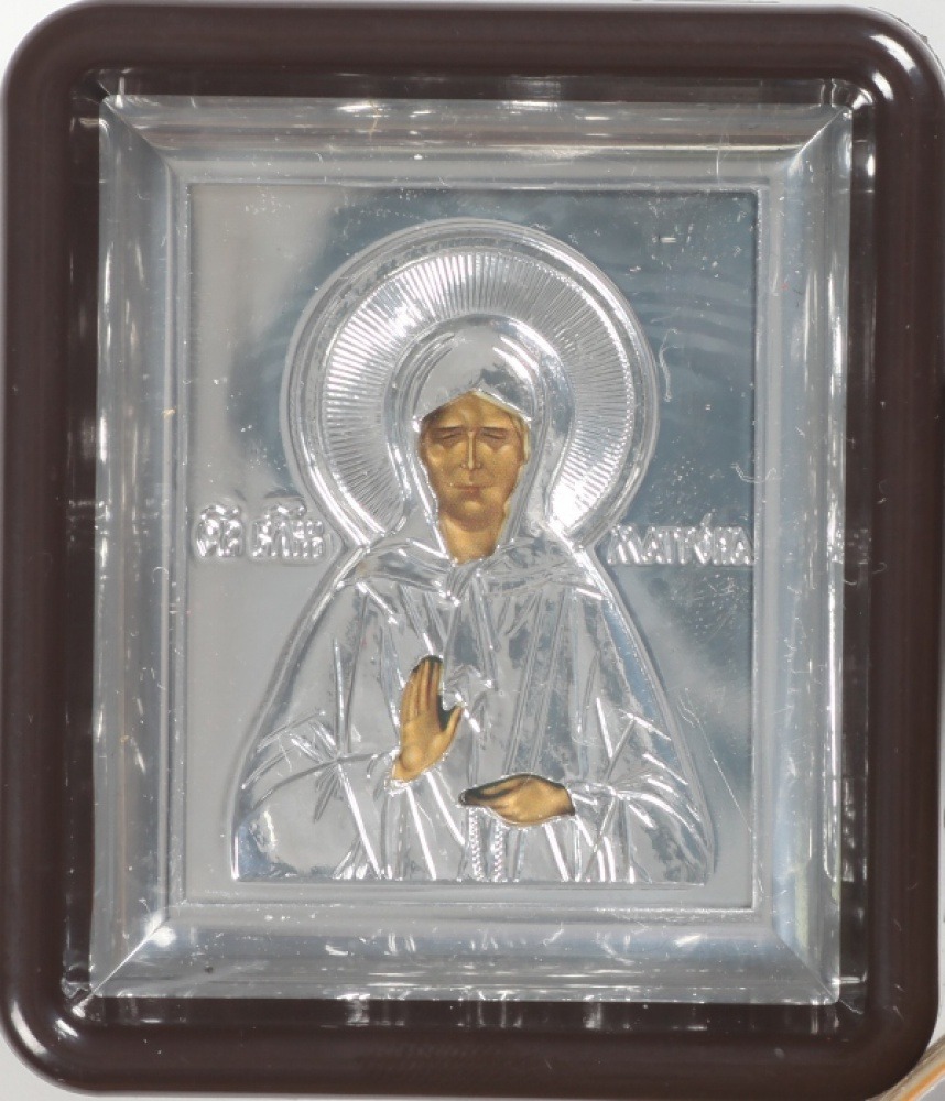 Икона в пластмассовой рамке 6х7 металлизированная риза Матрона Московская (с венчиком)