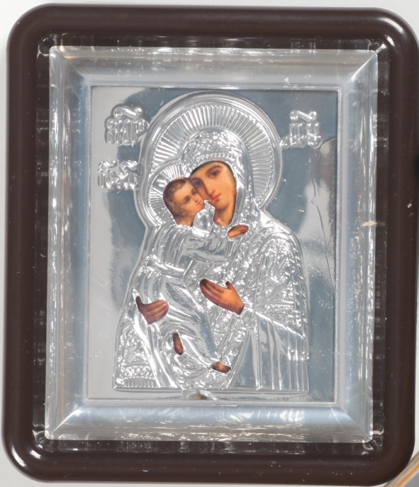 Икона в пластмассовой рамке 6х7 металлизированная риза Владимирская БМ