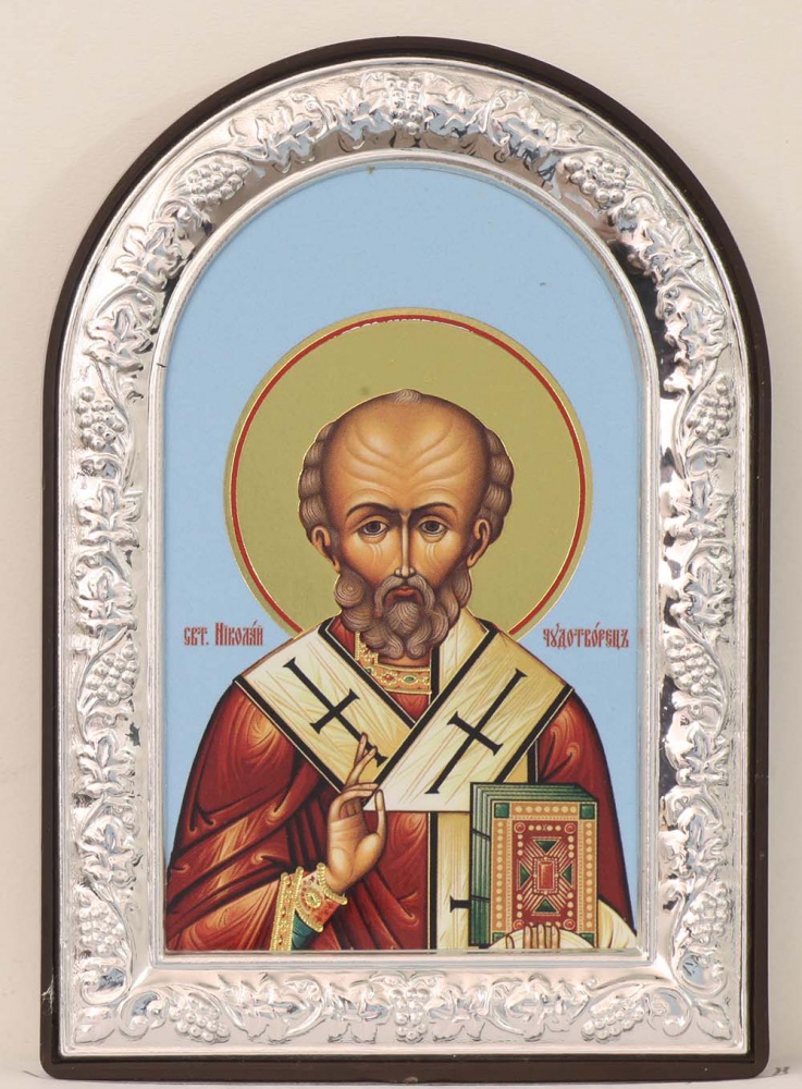 Икона в пластмассовой рамке 6х9 арочная №1 Николай Чудотворец 10